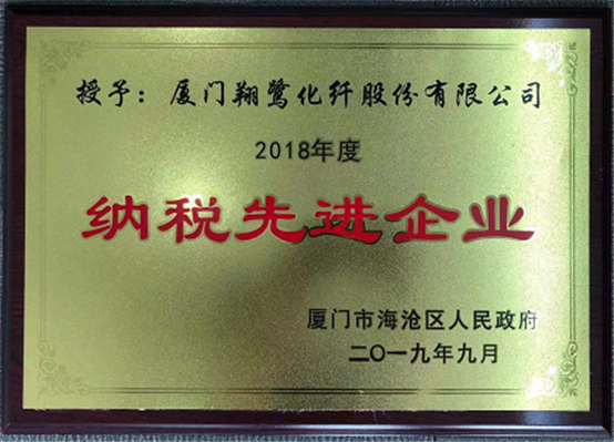 恭賀廈門翔鷺化纖股份有限公司被廈門市海滄區人民政府評為“2018年度納稅先進企業”。