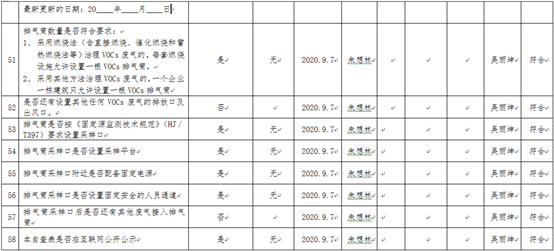 廈門市揮發性有機物污染防治企業自查表(2020年第二季度)